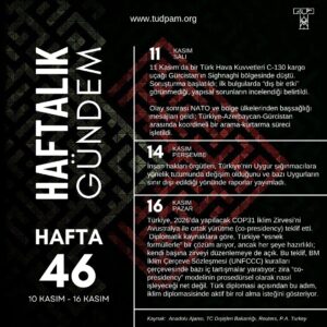 TUDPAM Araştırma Asistanı Görkem Berk Gedikli‘nin hazırlayıp tasarladığı “Haftalık Gündem 2025 46. Hafta” isimli Türk Dış Politikasının haftalık gündem infografiği sizler için beğenilerinize sunulmaktadır.