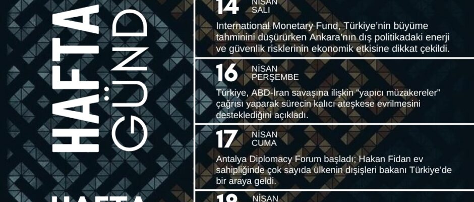 TUDPAM Araştırma Asistanı Görkem Berk Gedikli‘nin hazırlayıp tasarladığı “Haftalık Gündem 2026 16. Hafta” isimli Türk Dış Politikasının haftalık gündem infografiği sizler için beğenilerinize sunulmaktadır. Hazırlayan: Görkem Berk Gedikli Tasarlayan: Görkem Berk Gedikli