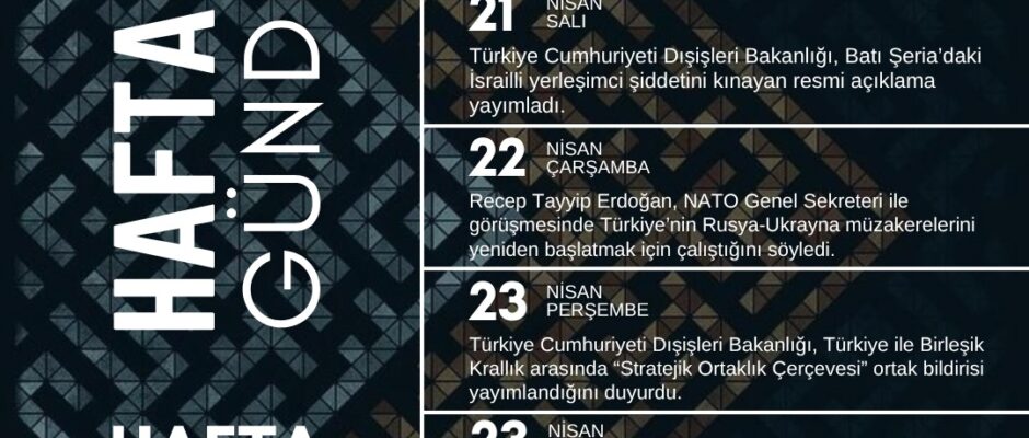 TUDPAM Araştırma Asistanı Görkem Berk Gedikli‘nin hazırlayıp tasarladığı “Haftalık Gündem 2026 17. Hafta” isimli Türk Dış Politikasının haftalık gündem infografiği sizler için beğenilerinize sunulmaktadır. Hazırlayan: Görkem Berk Gedikli Tasarlayan: Görkem Berk Gedikli