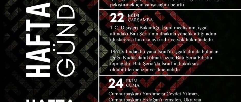 TUDPAM Araştırma Asistanı Görkem Berk Gedikli‘nin hazırlayıp tasarladığı “Haftalık Gündem 2025 42. Hafta” isimli Türk Dış Politikasının haftalık gündem infografiği sizler için beğenilerinize sunulmaktadır. Hazırlayan: Görkem Berk Gedikli Tasarlayan: Görkem Berk Gedikli