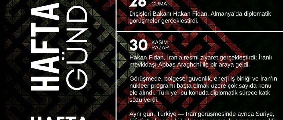 TUDPAM Araştırma Asistanı Görkem Berk Gedikli‘nin hazırlayıp tasarladığı “Haftalık Gündem 2025 48. Hafta” isimli Türk Dış Politikasının haftalık gündem infografiği sizler için beğenilerinize sunulmaktadır. Hazırlayan: Görkem Berk Gedikli Tasarlayan: Görkem Berk Gedikli