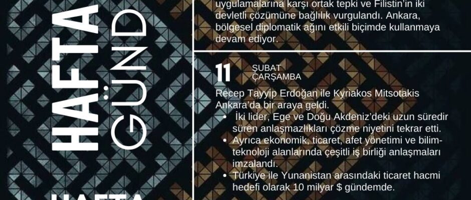 TUDPAM Araştırma Asistanı Görkem Berk Gedikli‘nin hazırlayıp tasarladığı “Haftalık Gündem 2026 7. Hafta” isimli Türk Dış Politikasının haftalık gündem infografiği sizler için beğenilerinize sunulmaktadır. Hazırlayan: Görkem Berk Gedikli Tasarlayan: Görkem Berk Gedikli