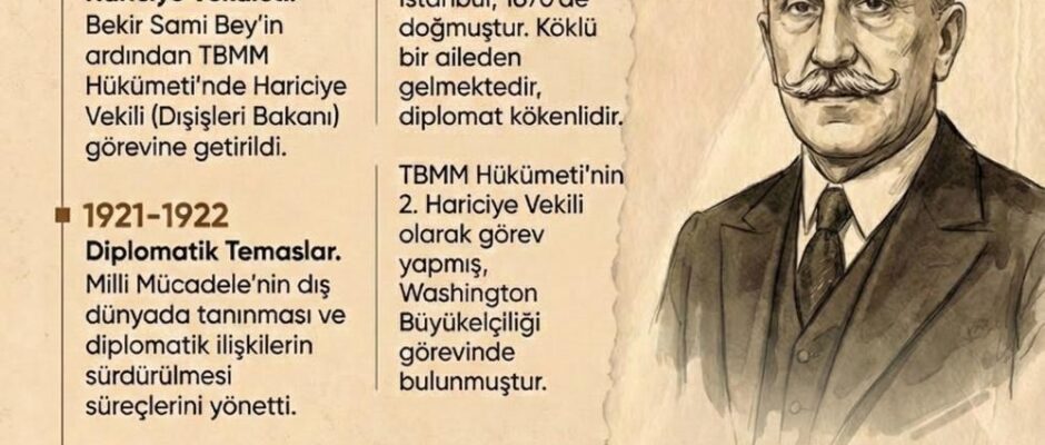 Ahmet Muhtar Mollaoğlu (1870–1934), Osmanlı Devleti’nin son dönemleri ile Türkiye Cumhuriyeti’nin kuruluş sürecinde önemli görevlerde bulunmuş bir diplomat ve siyasetçidir. Türkiye’nin Amerika Birleşik Devletleri’ndeki ilk büyükelçisi olarak Türk diplomatik tarihinde özel bir yere sahiptir. Kurtuluş Savaşı döneminde Londra Konferansı’na katılan Hariciye Vekili Bekir Sami Bey’in yokluğunda vekâleten bu görevi yürütmüş ve Bekir Sami Bey’in istifasının […]